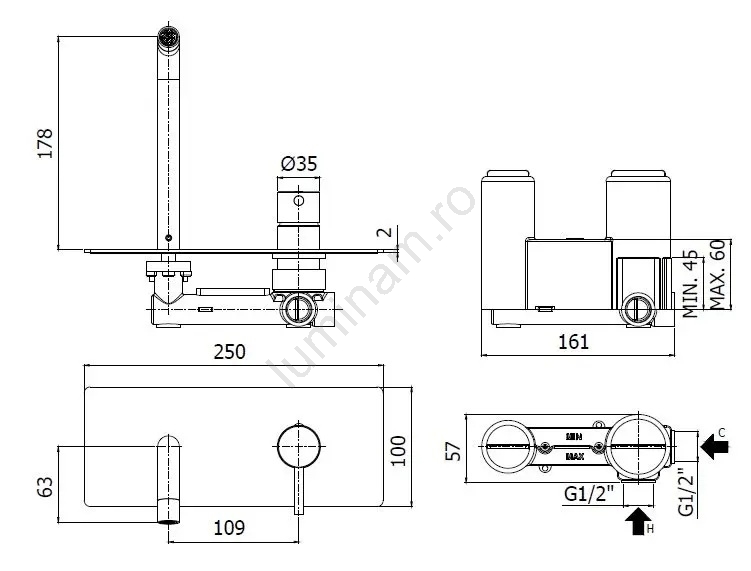 • Montaj: pe corpul de montaj încastrat – inclus în pachet (nu trebuie cumpărat separat).