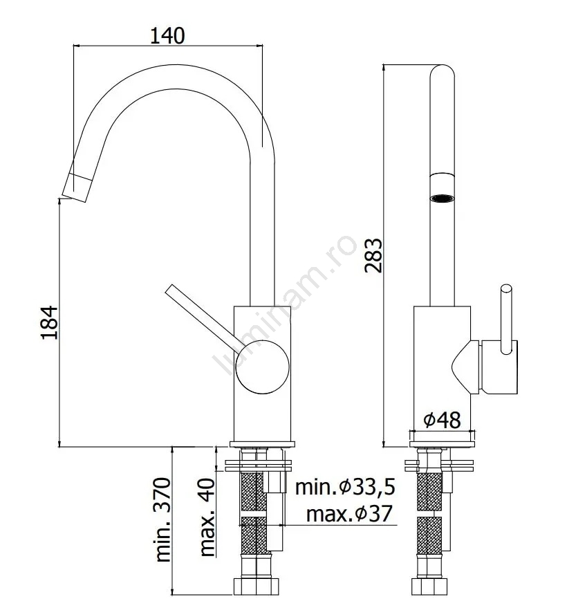 • Include furtunuri de conectare din oțel inoxidabil.