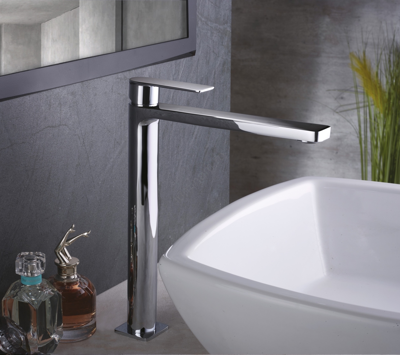 • Baterie înaltă pentru lavoar, montaj pe blat, din seria Paffoni Tango.