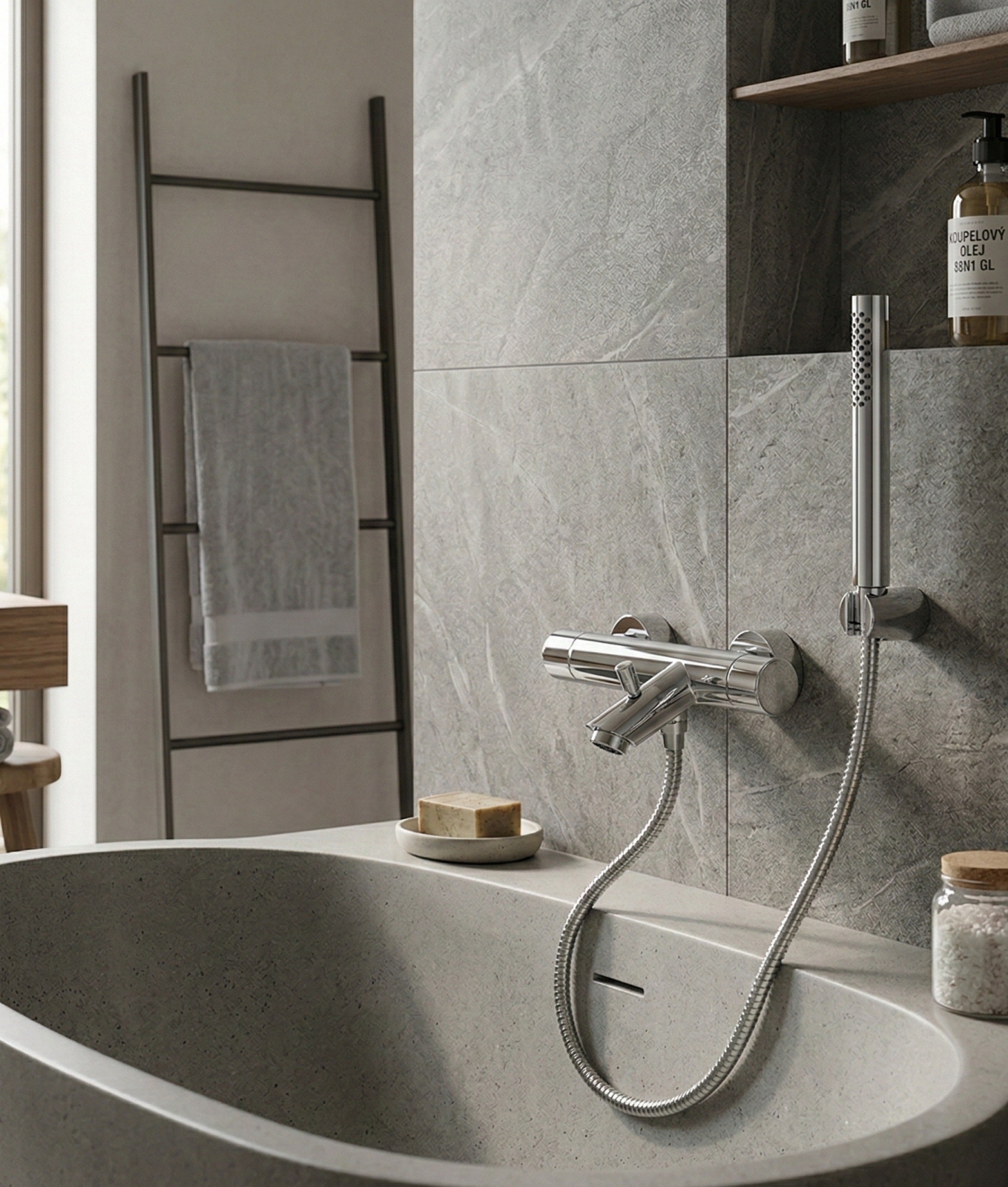 • Include para de duș manuală, furtun de duș, suport și rozete de acoperire.