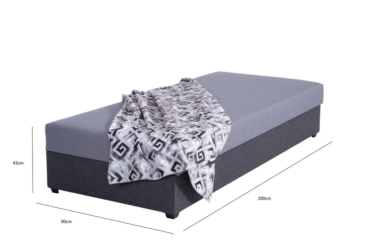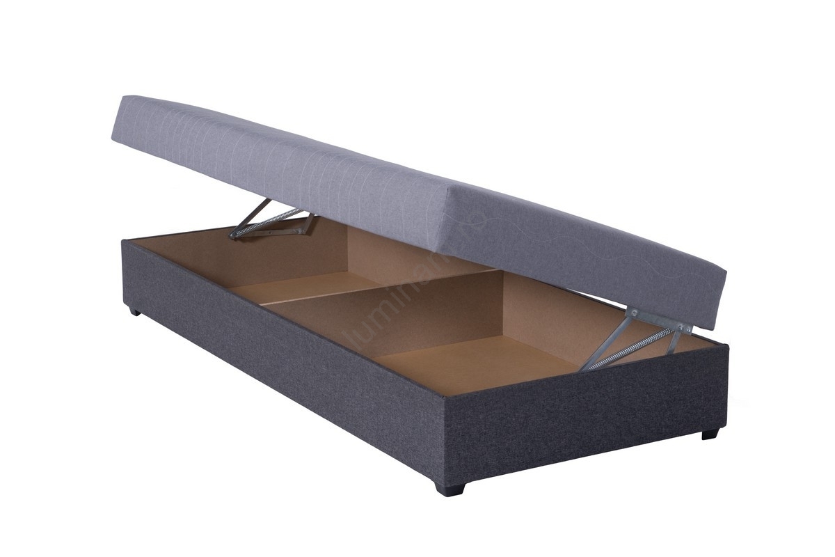 Pat tapițat cu spațiu de depozitare JACOB XL, 90x200 cm, capacitate 130 kg, gri