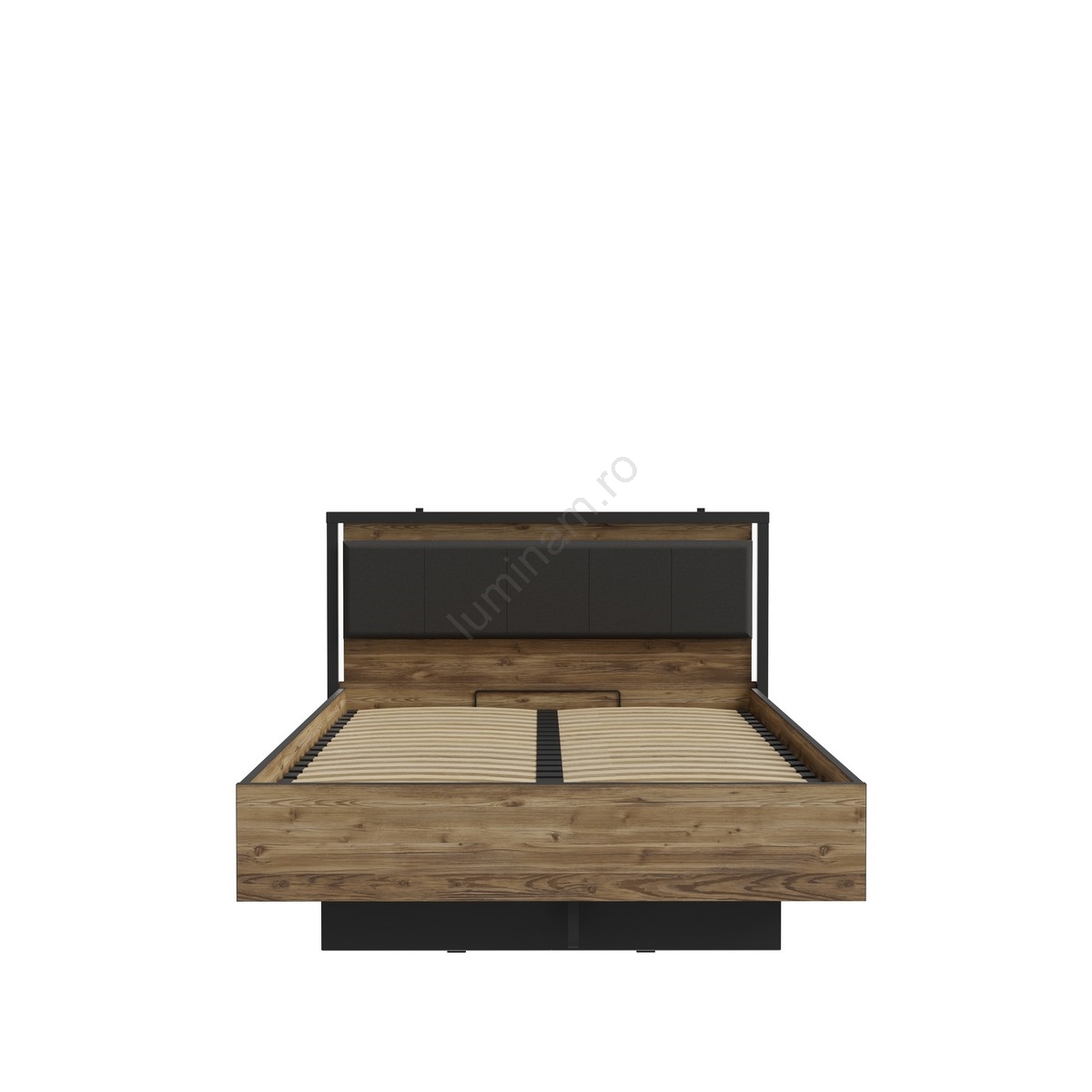 Pat dublu cu spațiu de depozitare OREN 140x200 cm, maro/negru