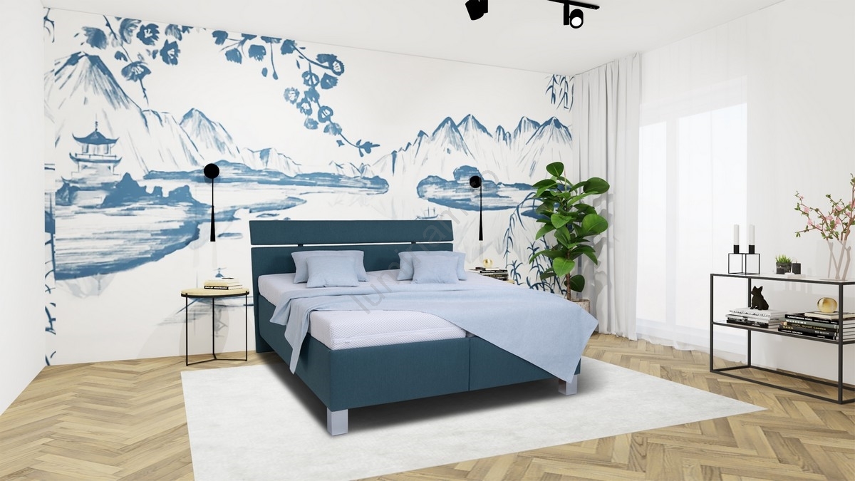 • Pat tapițat ALIS 180x200 cm cu saltea și spațiu de depozitare, petrol
