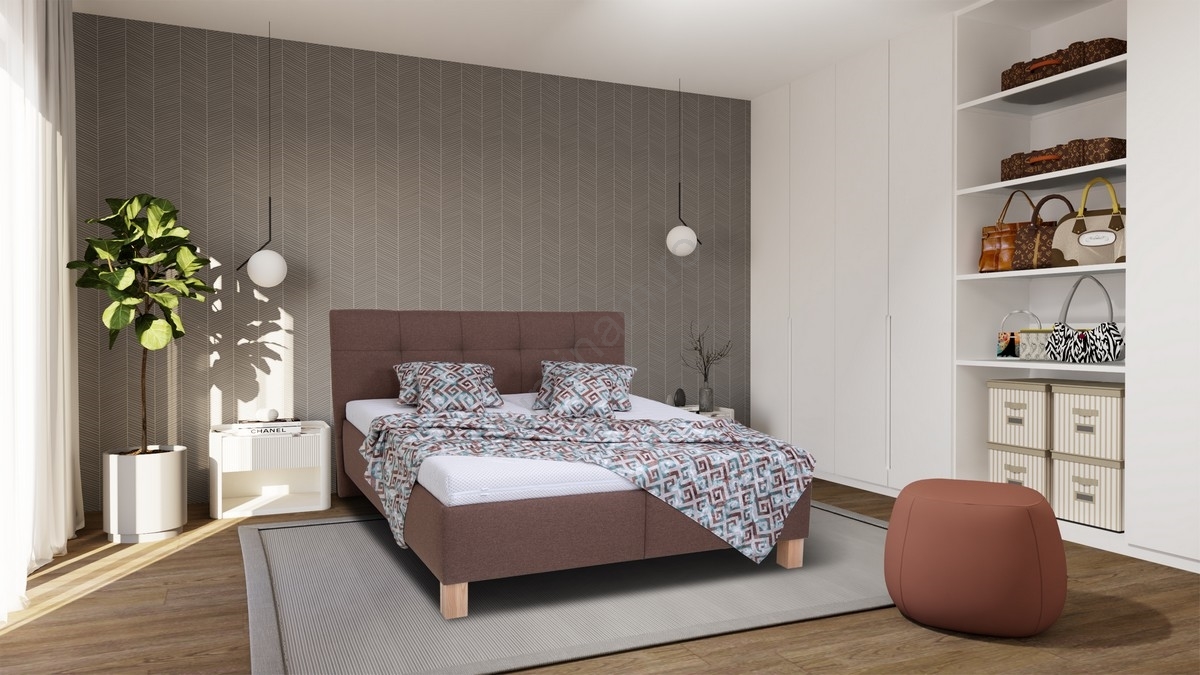 • Pat tapițat MARIA 160 x 200 cm cu saltea și spațiu de depozitare, maro