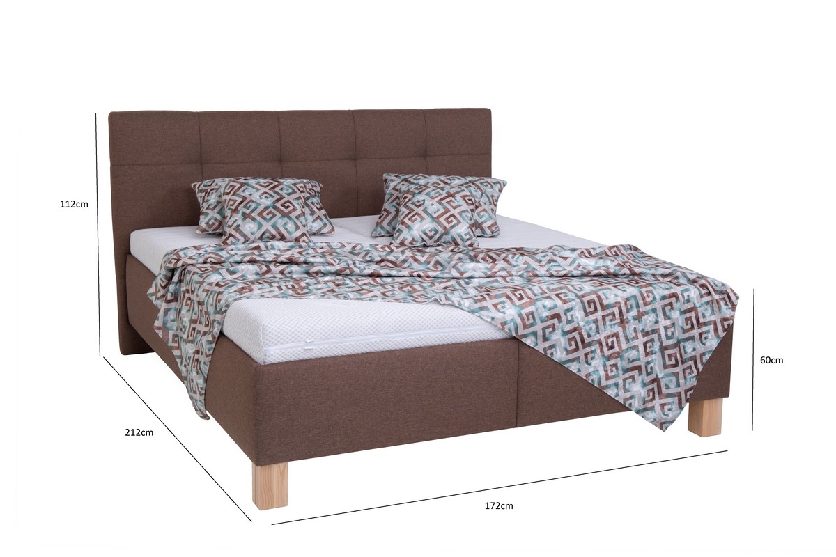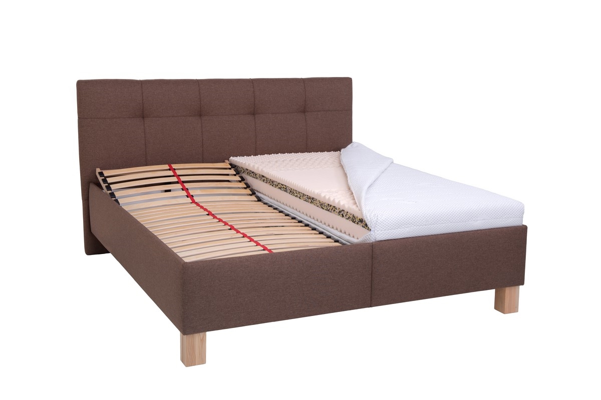 Pat tapițat MARIA 160 x 200 cm cu saltea și spațiu de depozitare, maro