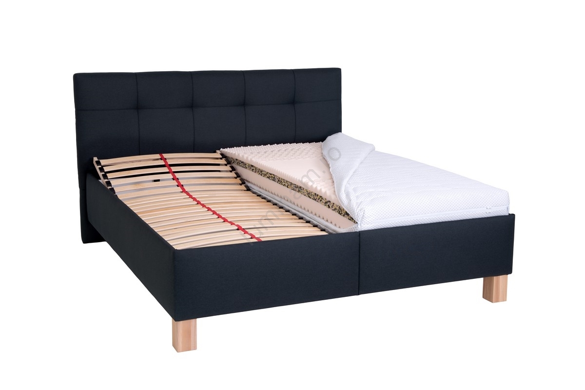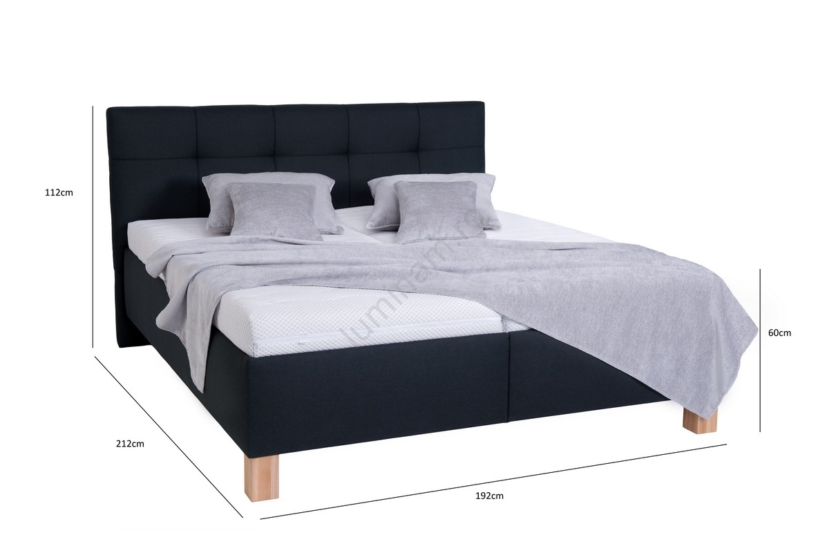 • Pat tapițat MARIA 180x200 cm cu saltea și spațiu de depozitare, antracit