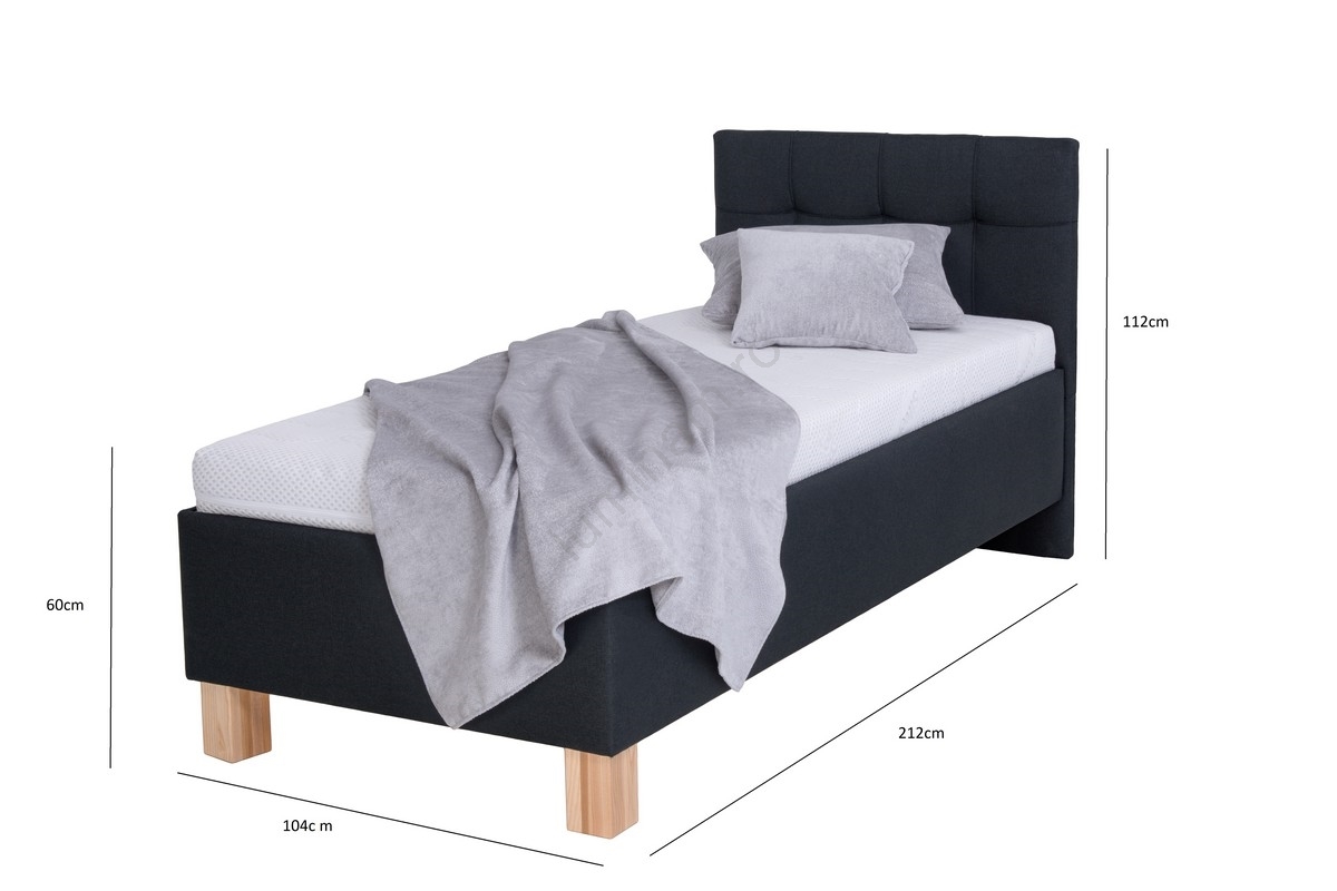 • Pat tapițat MARIA ONE 90x200 cm cu saltea și spațiu de depozitare, antracit