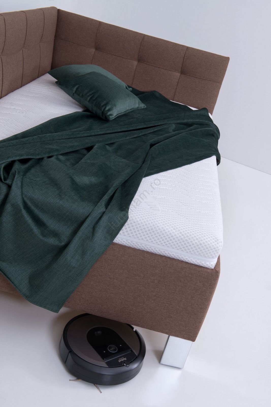 • Picioare stabile, cu design atent lucrat, din crom, înalte 15 cm, nu doar subliniază aspectul modern al patului, dar permit curățarea ușoară, inclusiv cu ajutorul unui aspirator robot.