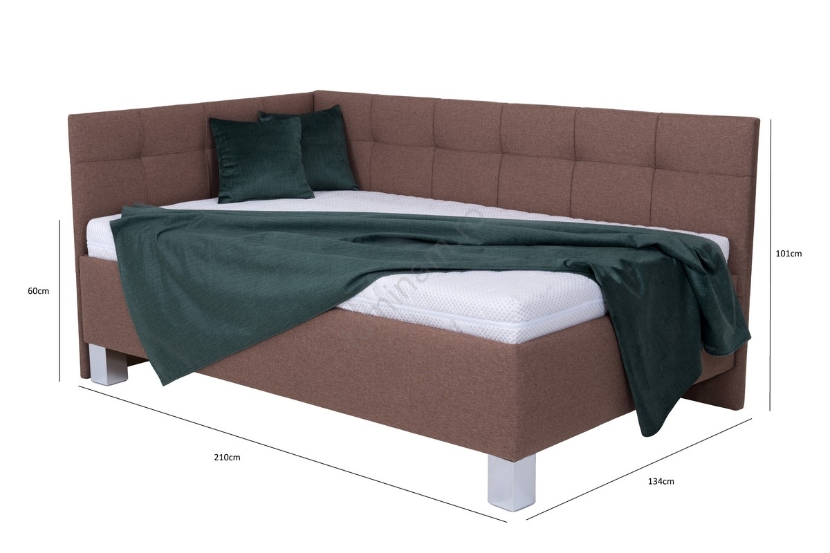 • Pat tapițat MARIA PETITE 120x200 cm cu saltea și spațiu de depozitare, maro