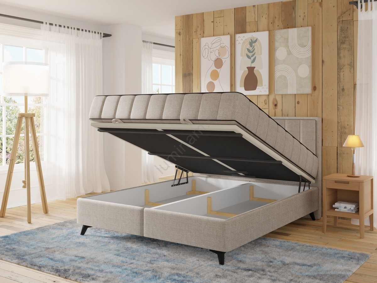 • Patul dispune de spațiu de depozitare încăpător pentru lenjerii de pat și alte obiecte.