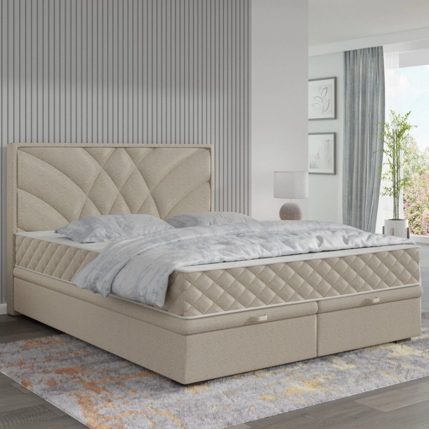 • Tapițeria bej, combinată cu aspectul pufos al saltelei, creează un aspect armonios, primitor și totodată luxos.
