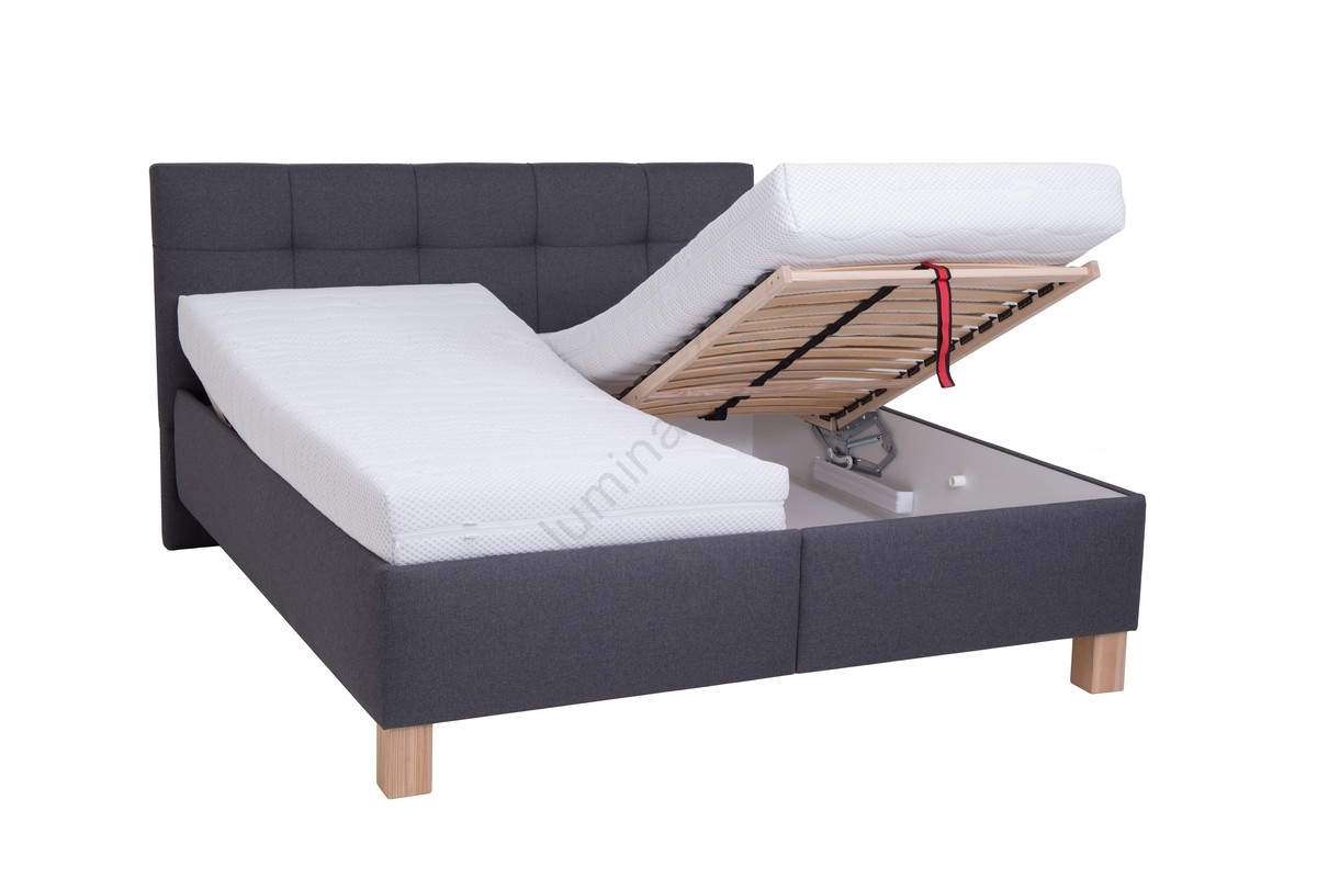 Pat tapițat MARIA 180x200 cm, gri, cu spațiu de depozitare, fără saltea