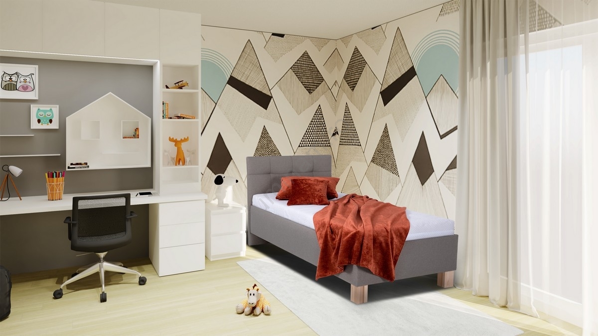 • Pat tapițat MARIA ONE 90 x 200 cm, cu saltea și spațiu de depozitare, gri