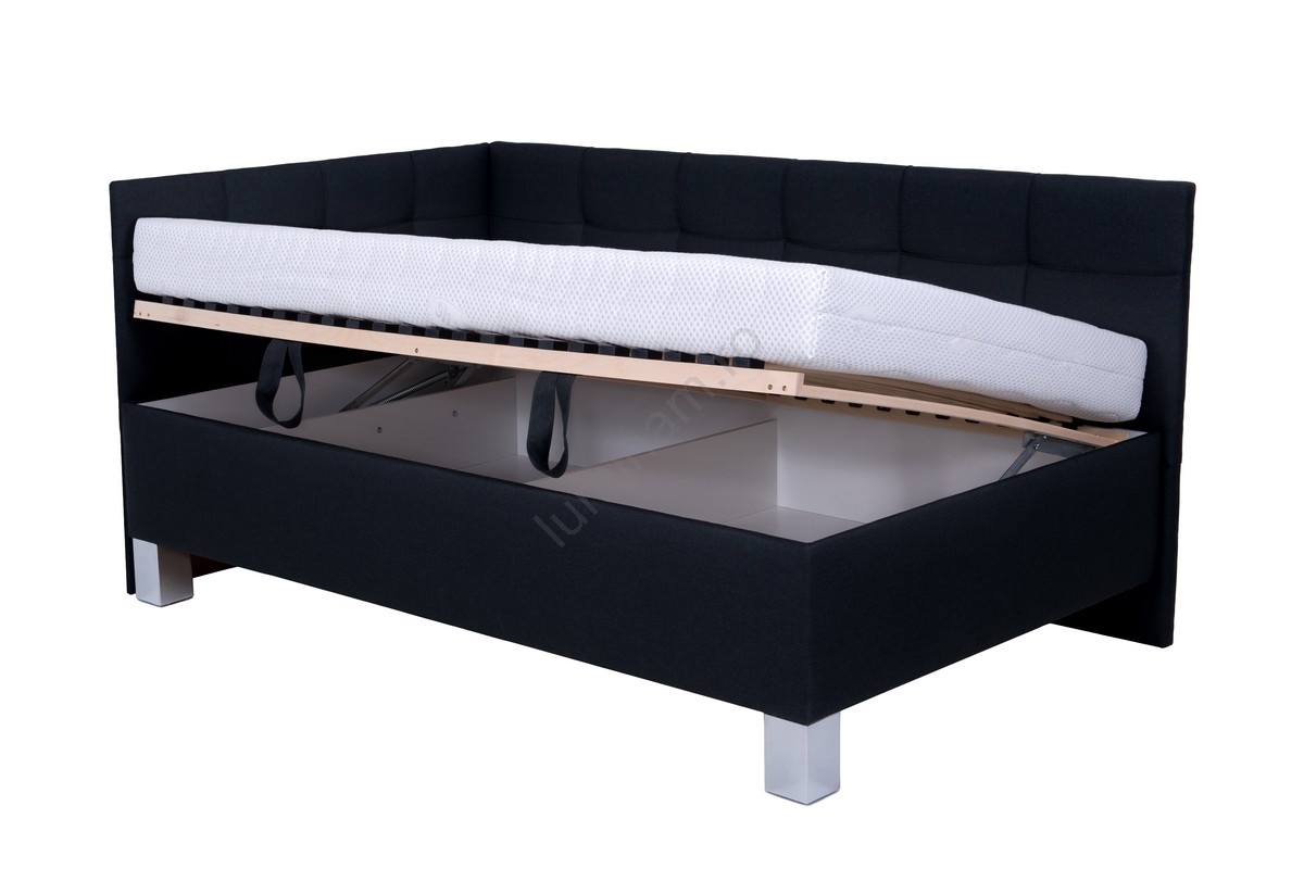 • Pat tapițat MARIA PETITE 120x200 cm, antracit, cu saltea și spațiu de depozitare