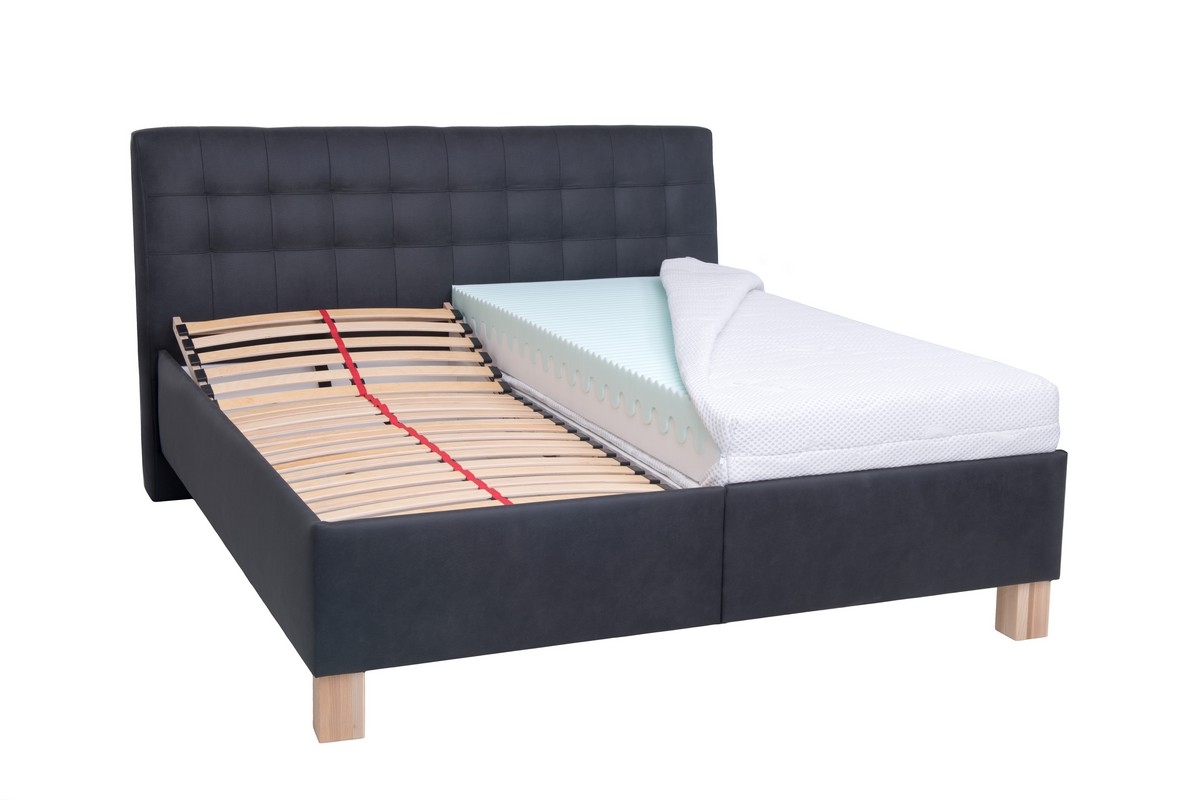 • Pat tapițat VIOLET 160 x 200 cm, cu spațiu de depozitare, fără saltea, gri închis