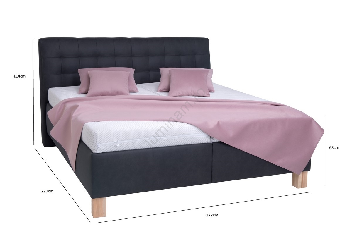 • Pat tapițat VIOLET 160x200 cm, cu saltea inclusă și spațiu de depozitare, gri închis