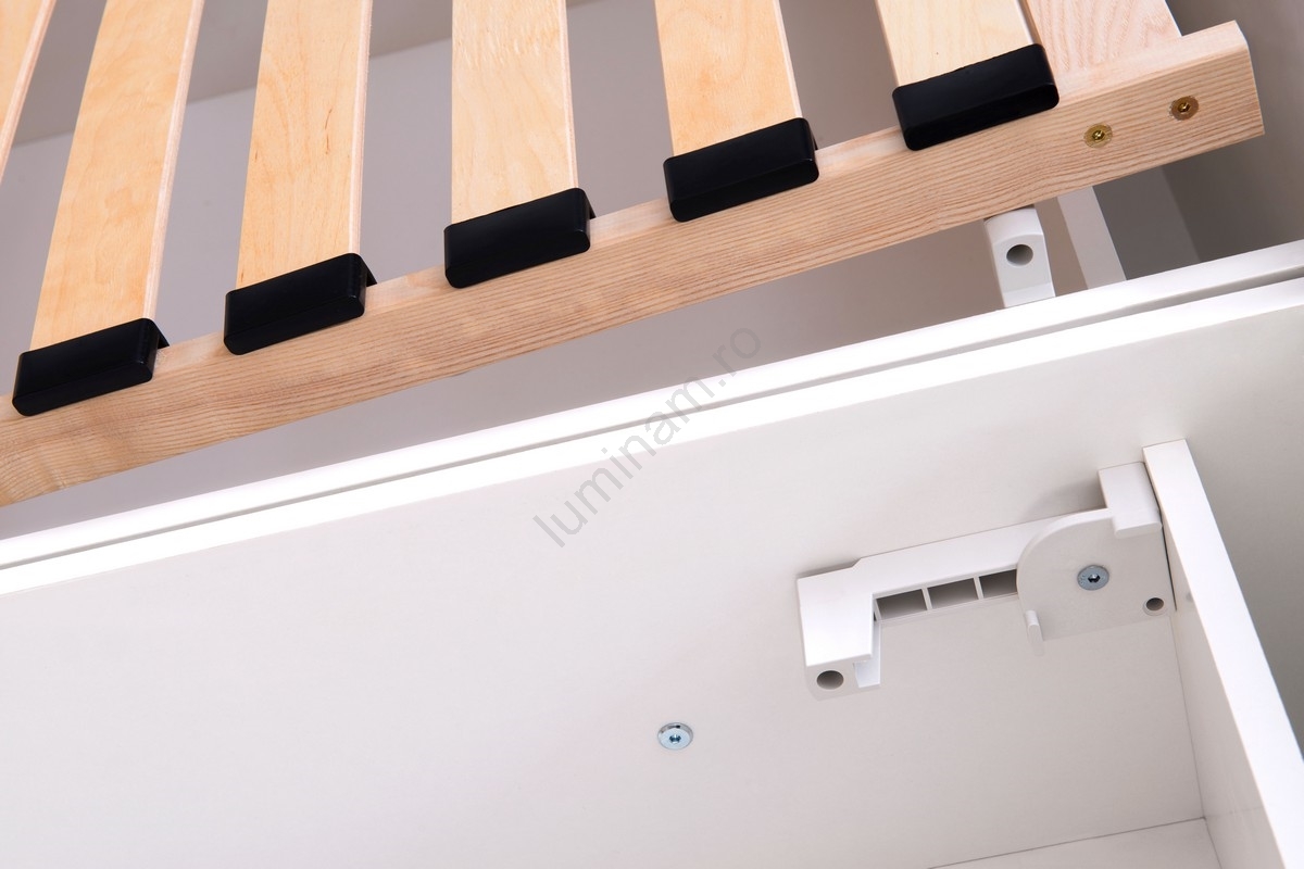 • Patul este echipat cu un spațiu generos de depozitare cu grile de ventilare pentru păstrarea lenjeriilor sau a obiectelor sezoniere.