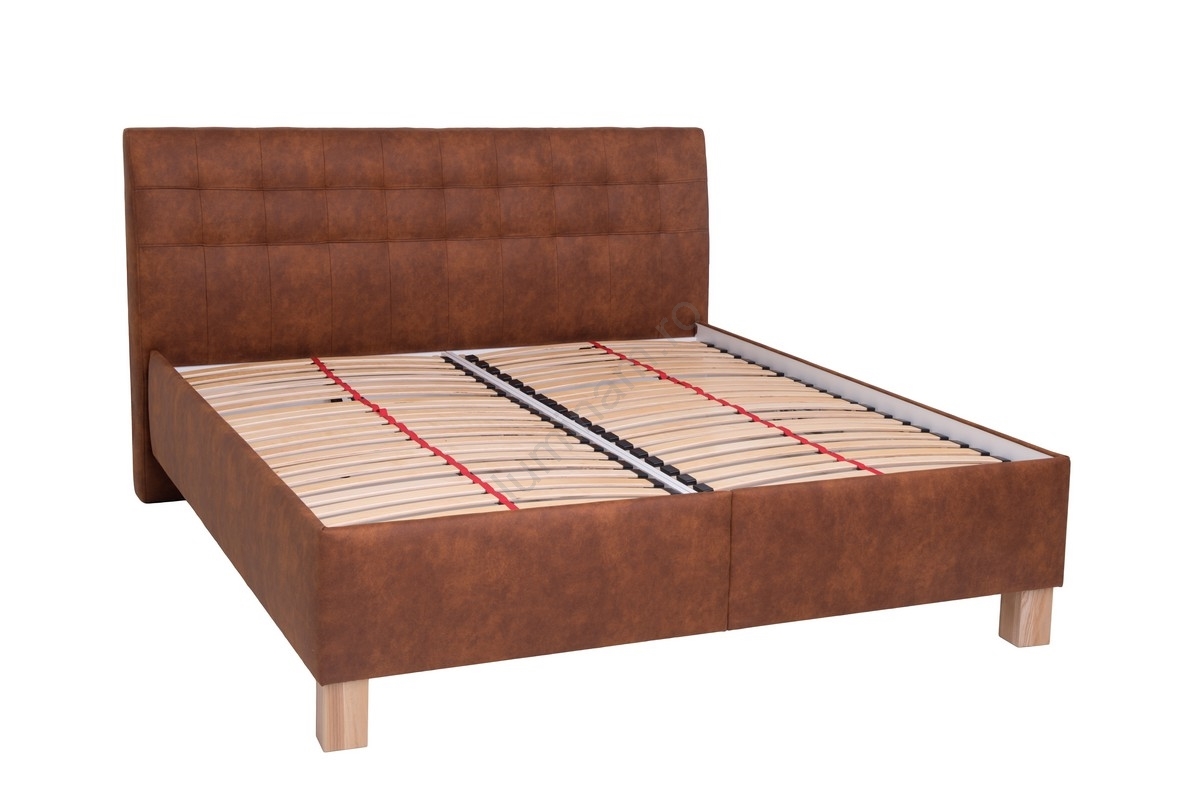 • Pat tapițat VIOLET 180 x 200 cm, cu spațiu de depozitare, fără saltea, maro coniac