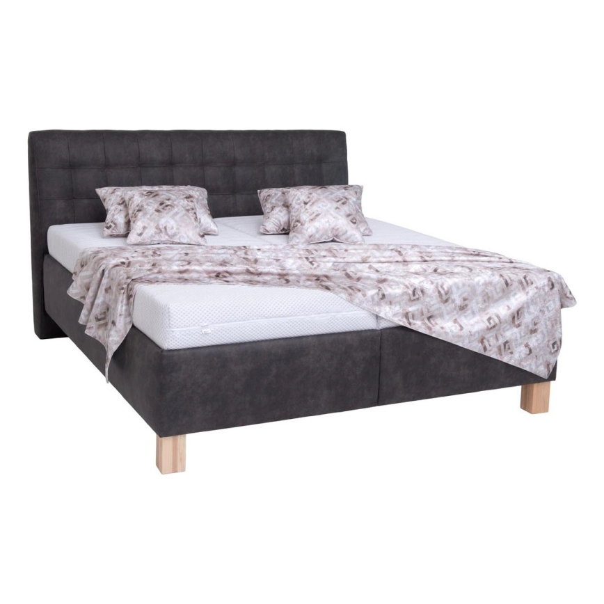 • Pat tapițat VIOLET, 180 x 200 cm, gri închis, cu saltea și spațiu de depozitare