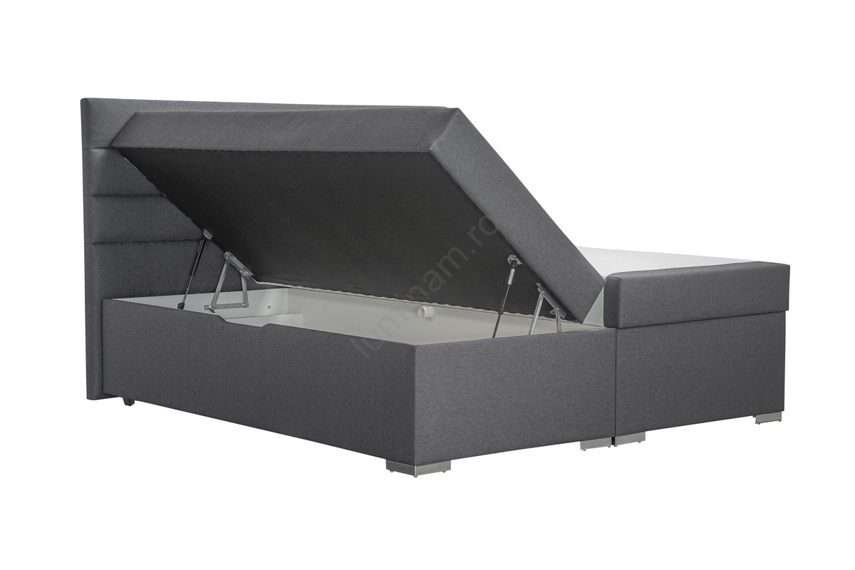 Pat tapițat NEW BOLERO 180 x 200 cm, cu spațiu de depozitare și saltele cu topper, gri