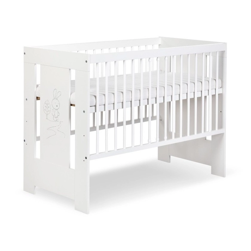 Pătuț pentru bebeluși SAFARI 120x60 cm, cu iepuraș, pin/alb - KLUPŚ