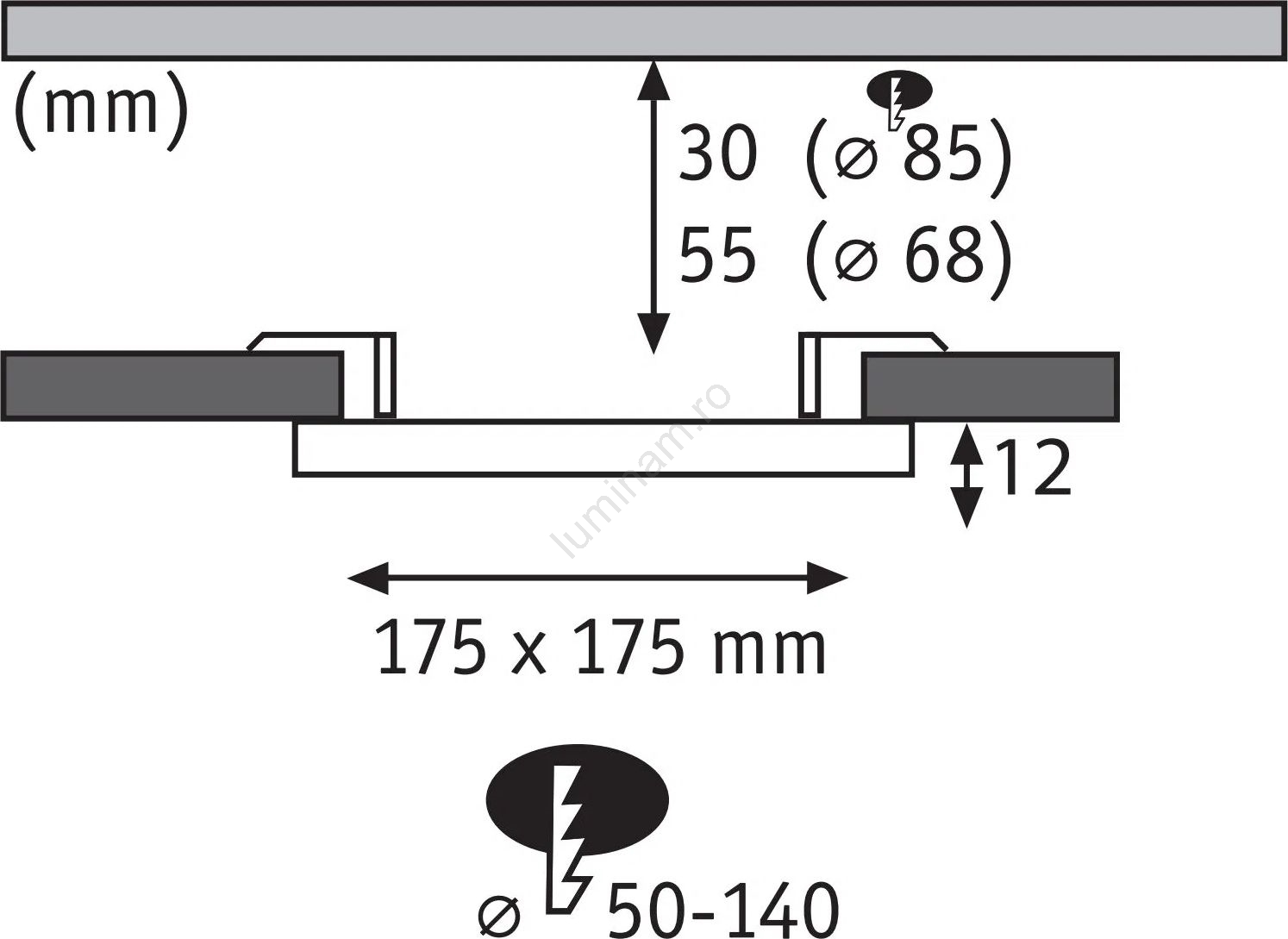 • Paulmann 93101 - Spot LED încastrat AREO 13W, IP44, pentru baie, 230V, 2000/3000/4000K, 17,5x17,5 cm, negru