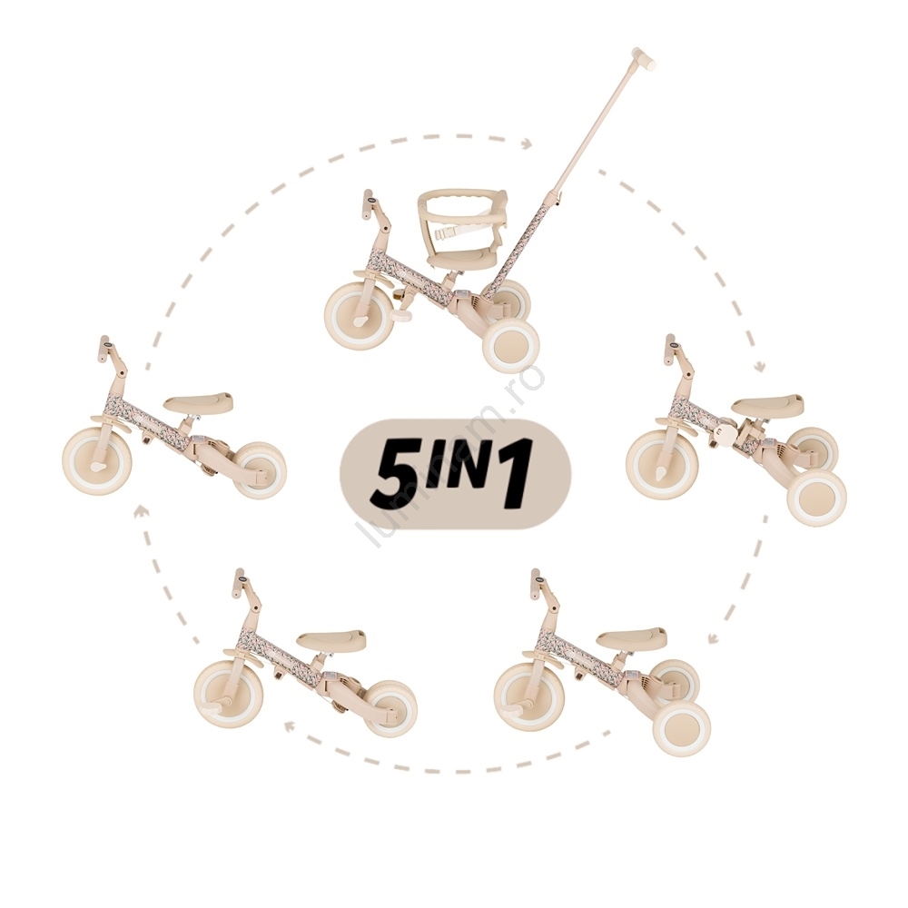 • Tricicletă multifuncțională cu 5 moduri, adaptată la vârsta și abilitățile copilului.