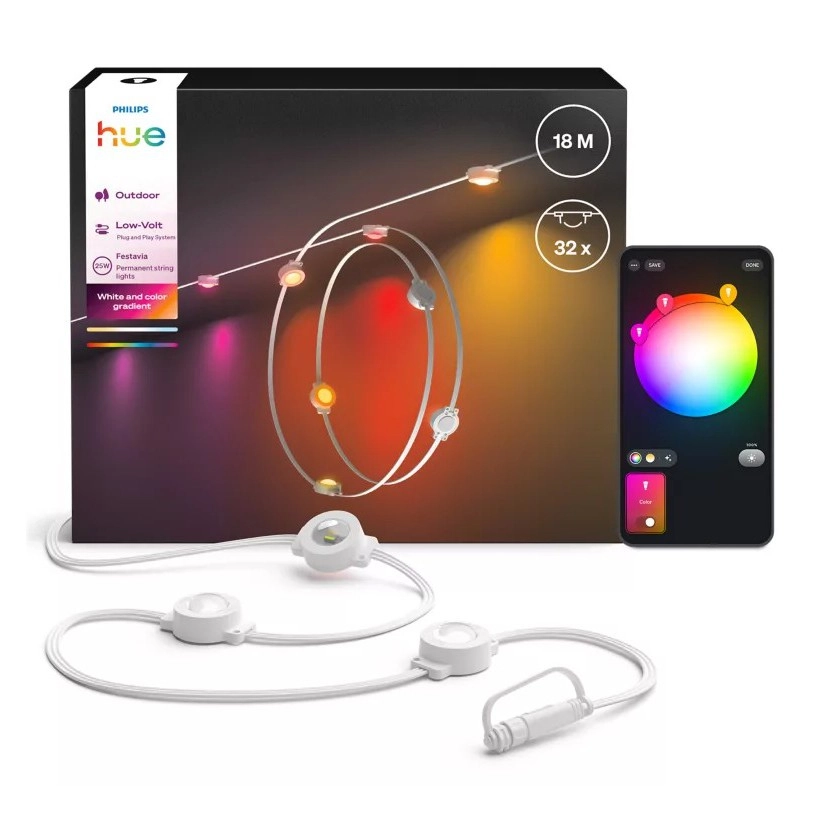 Philips - Ghirlandă LED de exterior Hue FESTAVIA RGBW dimerizabilă, 32 LED, 18 m, 1000-20000K, IP65