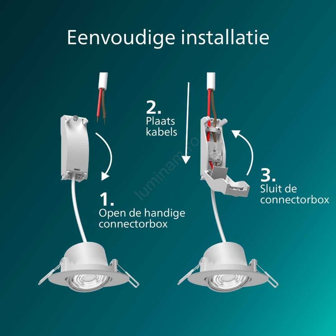 • Philips CILANTRO - spot LED încastrat dimabil, 5W, 230V, 2700K, alb