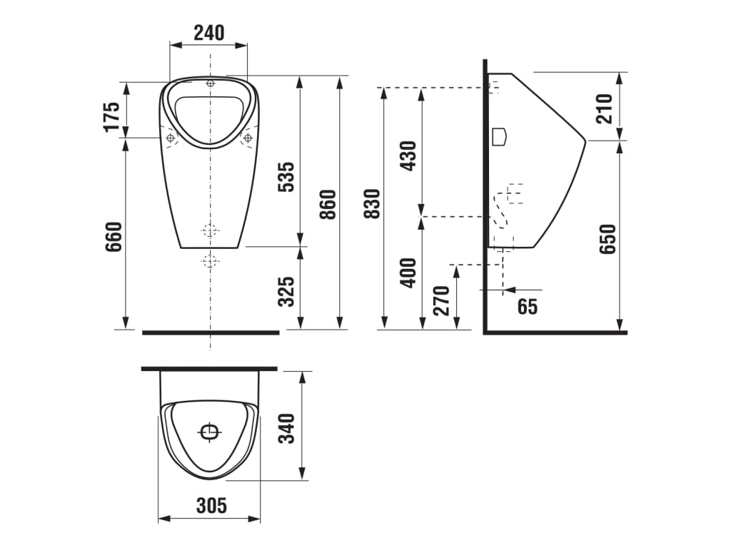 • Acest pisoar poate fi conectat la un sifon orizontal sau vertical.