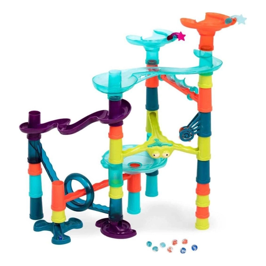 • Părinții pot construi împreună cu copiii o pistă care include turnuri înalte, poduri întortocheate și o varietate de piese în mișcare, iar apoi se pot bucura împreună urmărind bilele mișcându-se prin întregul labirint.