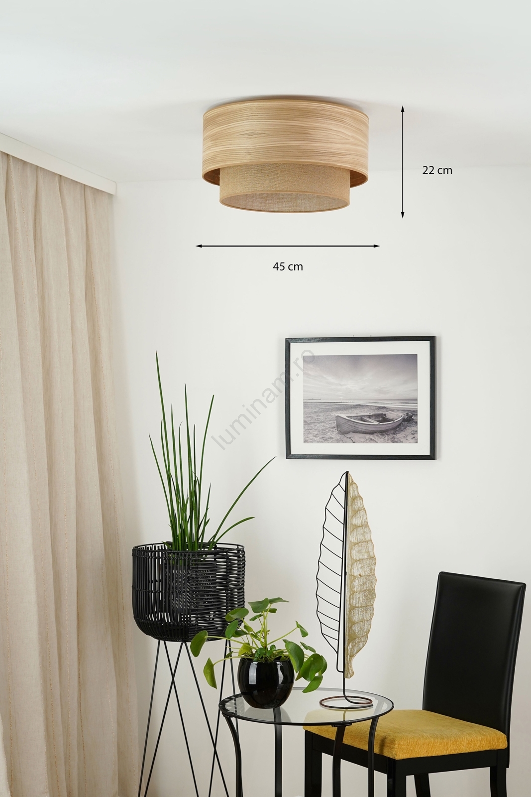 Iuta și furnirul sunt materiale naturale și ecologice, care se integrează perfect în tendințele designului sustenabil. Aceste lămpi combină simplitatea brută și eleganța naturii, creând o atmosferă caldă și primitoare în orice interior. Sunt alegerea ideală pentru cei care apreciază soluțiile ecologice și doresc să aducă în locuința lor elemente apropiate de natură. Alegând corpuri de iluminat naturale, puneți accent pe stil, armonie și grijă față de mediul înconjurător.