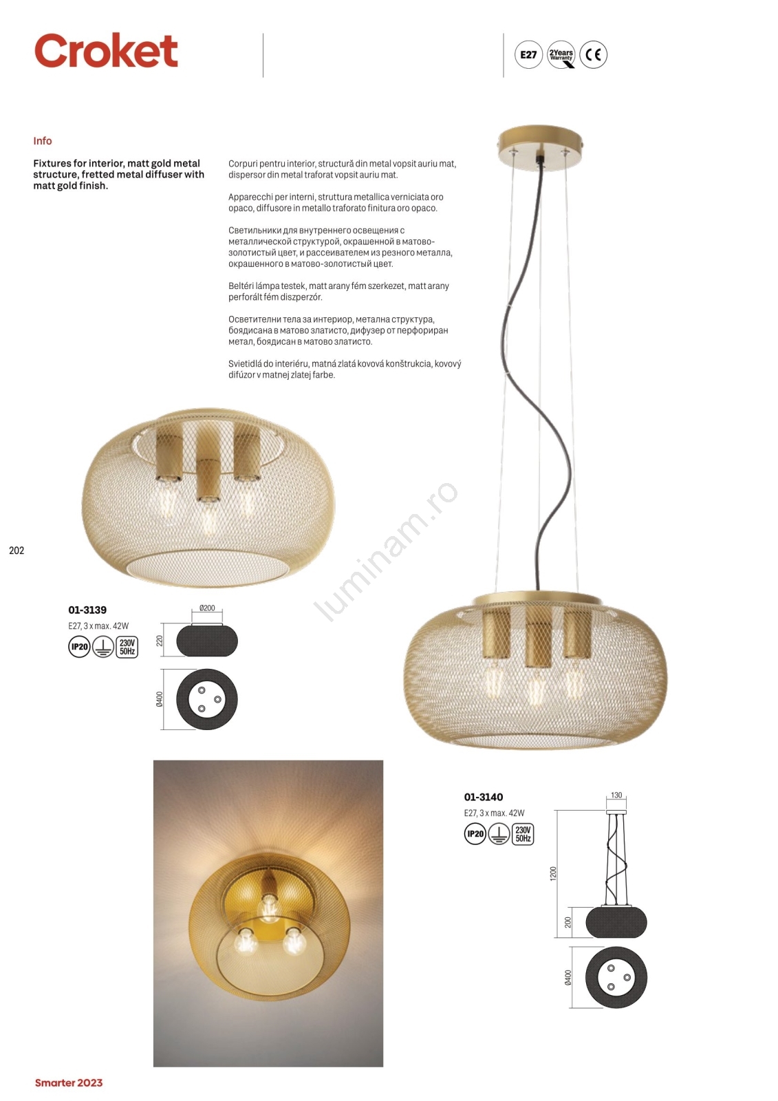 Plafonieră CROKET 3xE27/42W/230V d. 40 cm auriu Redo 01-3139