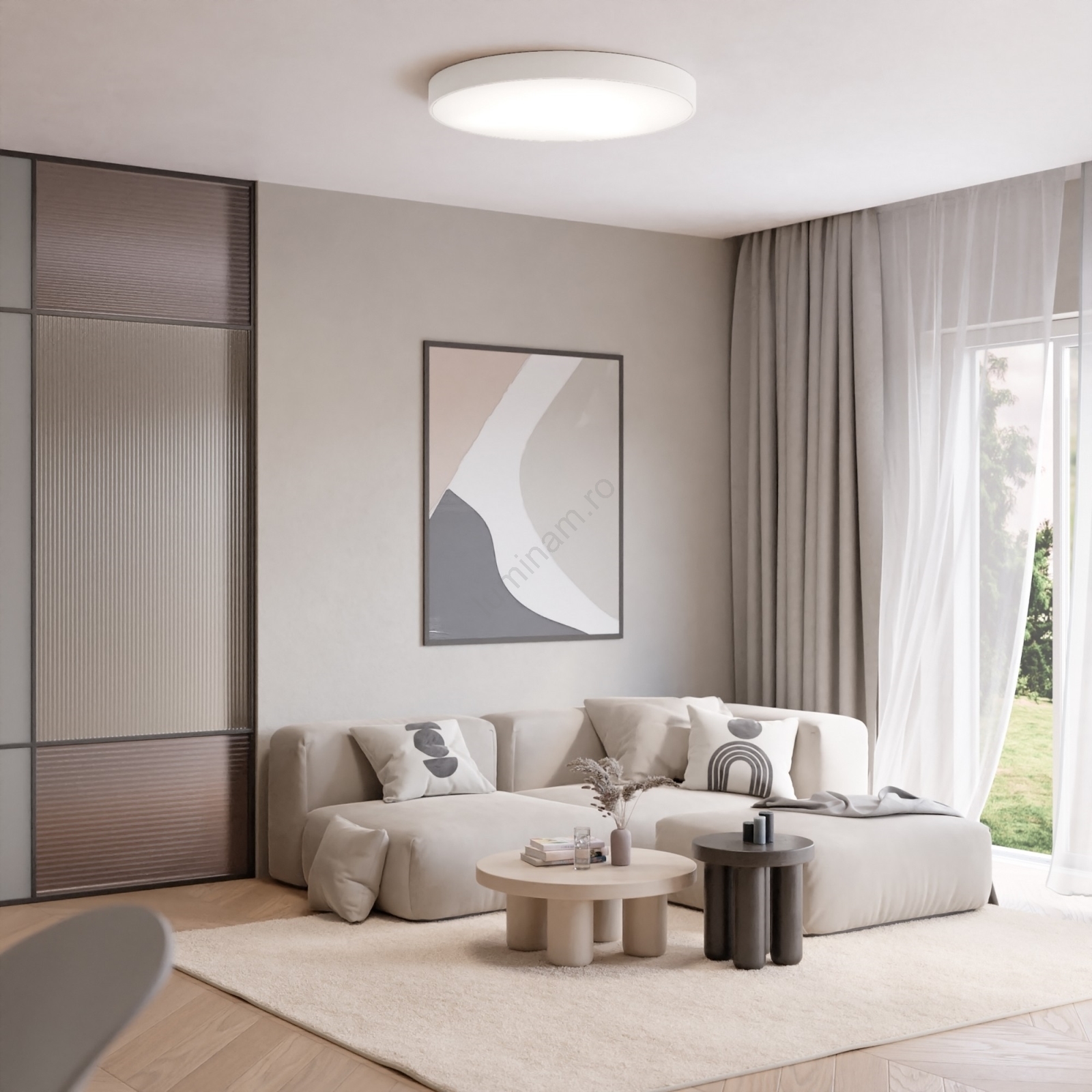 • Plafonieră CLEO cu senzor de mișcare și de amurg, 5x E27/24W/230V, diam. 60 cm, albă