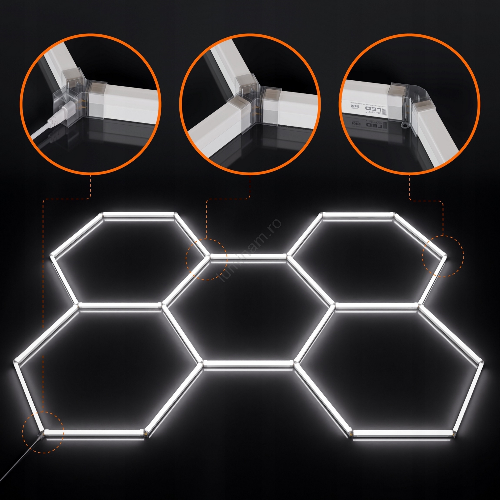• Datorită structurii hexagonale, iluminatul funcționează atât ca element estetic, cât și ca sistem de iluminare funcțional.
