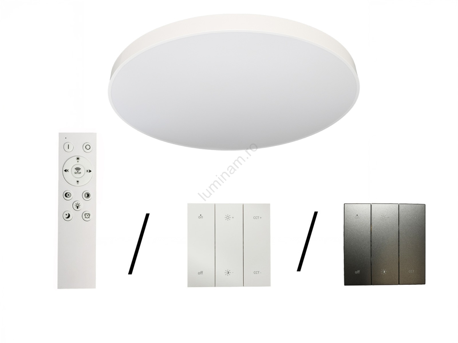 • Prin achiziționarea separată a unui panou de control de perete, extindeți funcțiile plafonierei cu reglare a intensității luminoase și schimbare treptată a temperaturii de culoare (3000-6500 K).