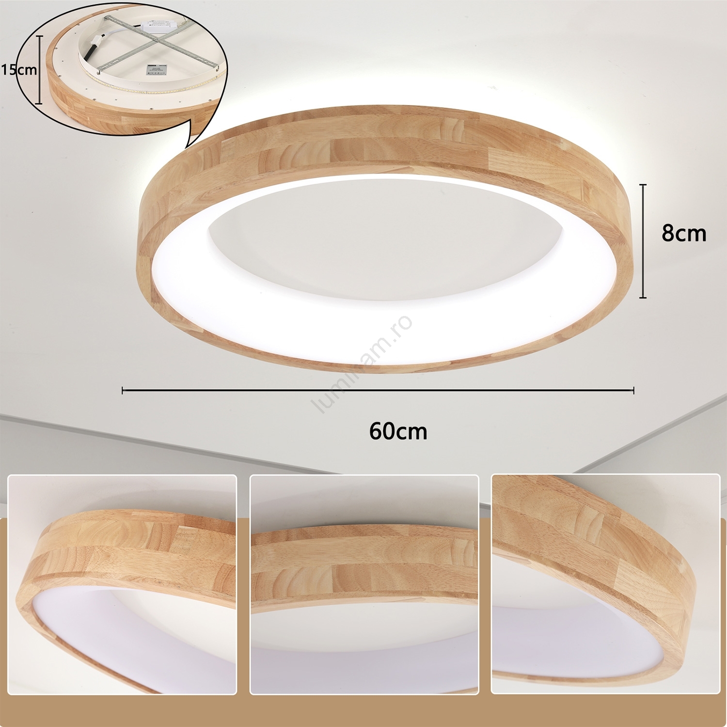 • Brilagi - Plafonieră LED FALCON WOOD, 40 W, 230 V, 3000/4000/6000 K, Ø 60 cm, finisaj lemn