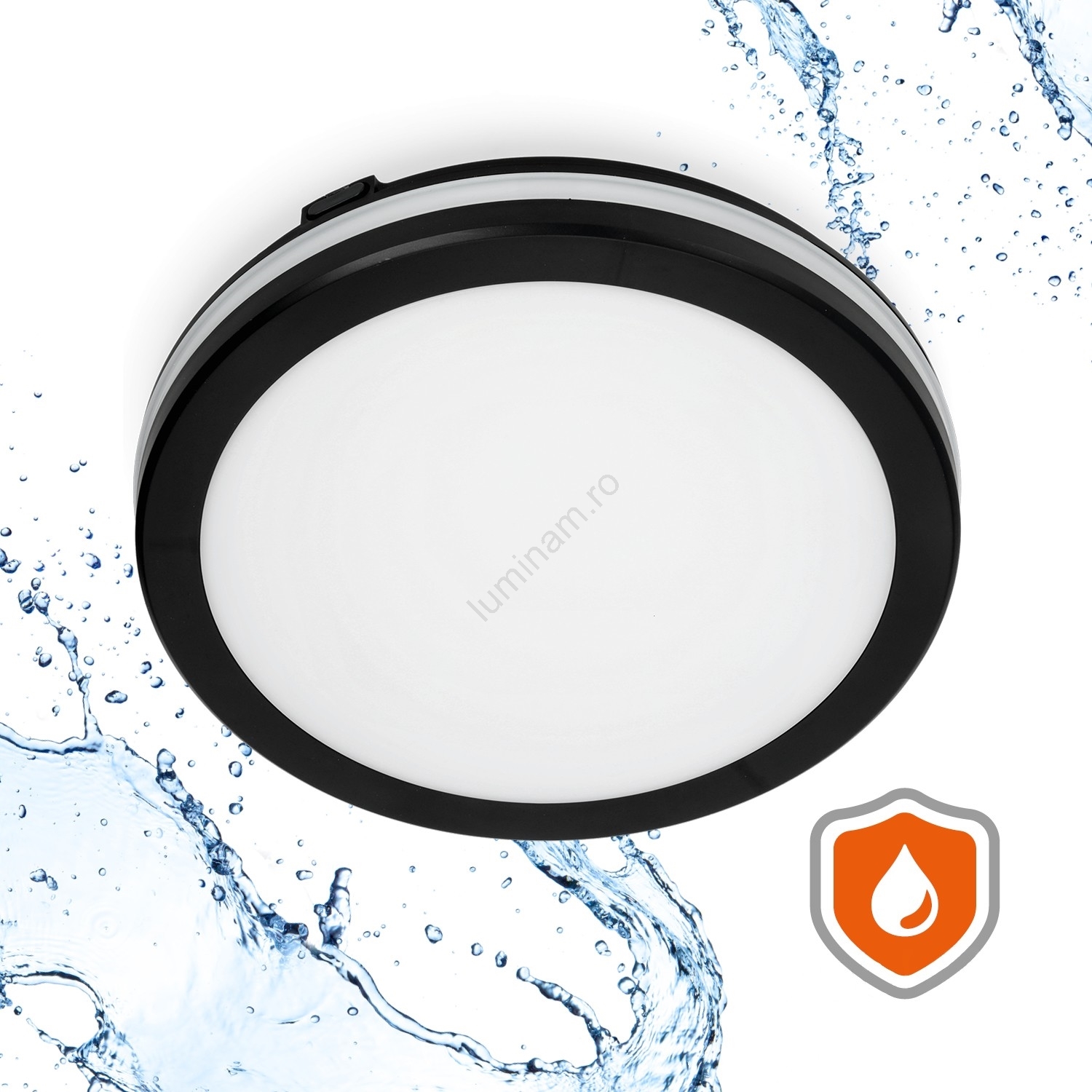 Lumină LED de tavan pentru baie cu senzor LED/24W/230V 3000/4000/6500K IP65 diametru 30 cm negru + telecomandă