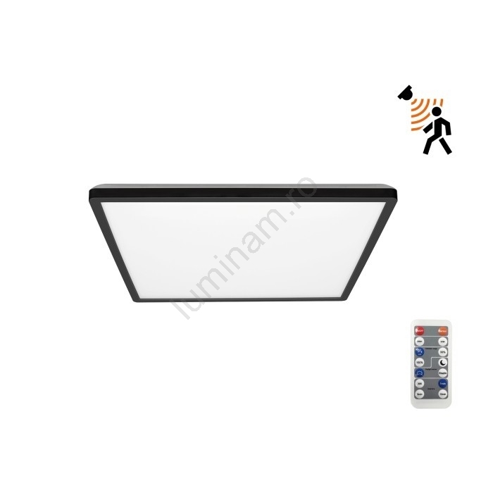 • Plafonieră LED cu senzor de mișcare și crepuscular pentru baie NIVERA LED/12W/230V IP54 3000/4000/6000K 22,5x22,5 cm negru + telecomandă