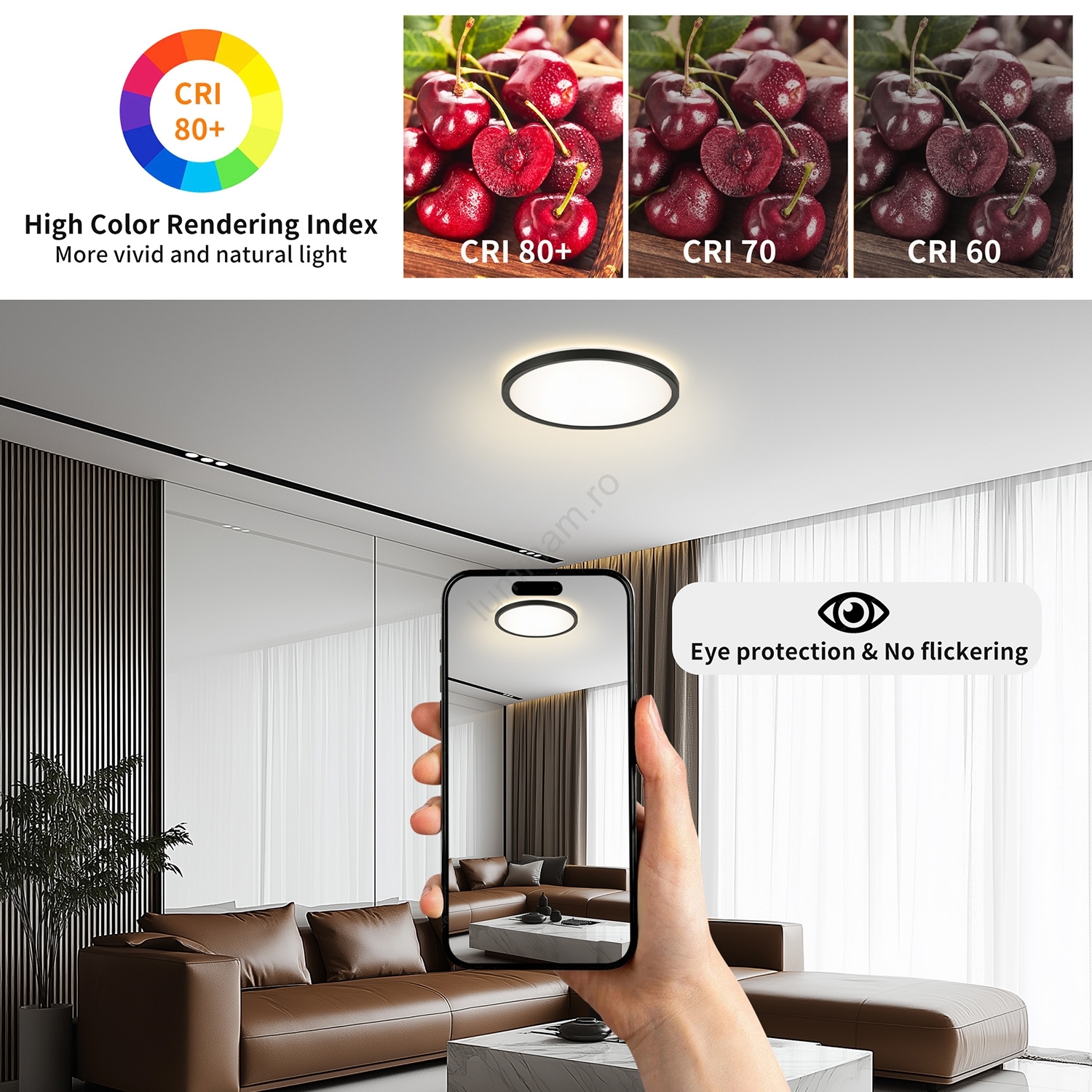 • Brilagi – Plafonieră LED Ultra Slim dimabilă, 24W, 230V, 2700–6500K, Ø 42 cm, negru, cu telecomandă