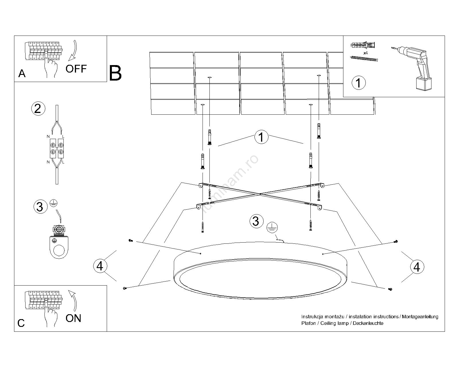 • Plafonieră LED ONYX, 48 W, 230 V, Ø 60 cm, neagră