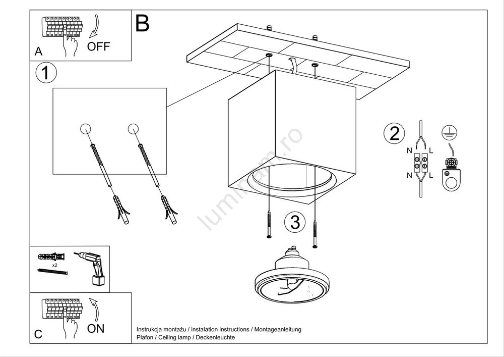 Plafonieră SEIDA 1xGU10/40W/230V