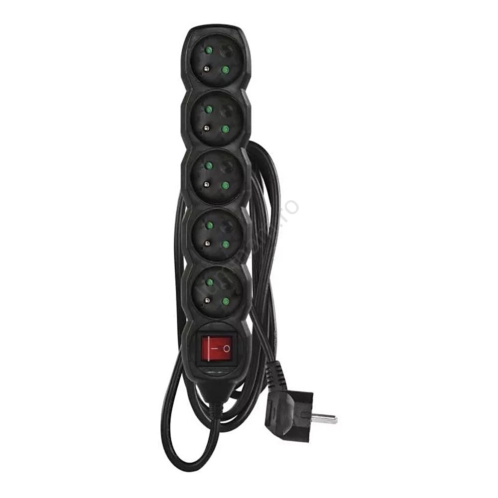 Prelungitor cu întrerupător 5Z 3m negru