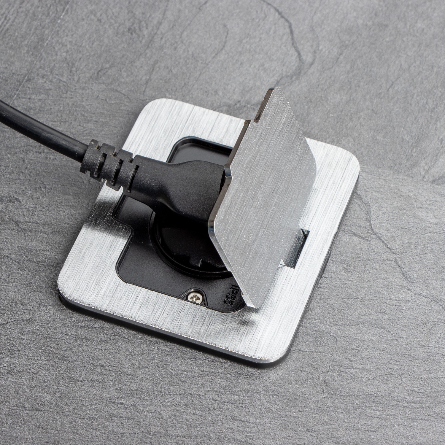 • Priză practică încastrabilă în podea (2P + PE) cu împământare.