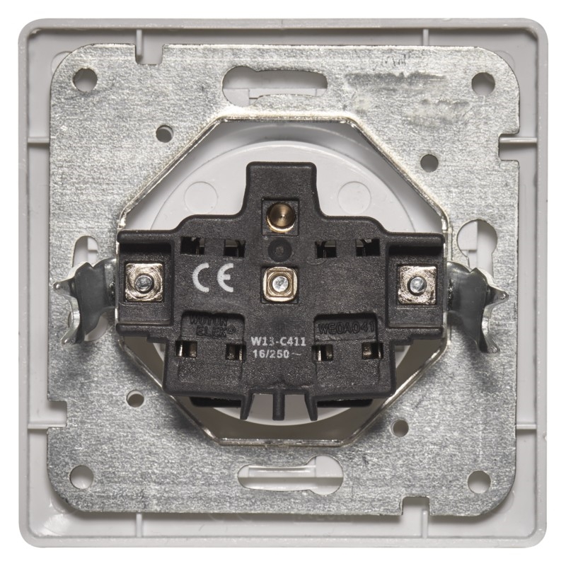 • Priză simplă tip E cu pin de împământare și capac pentru copii.