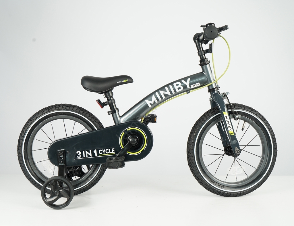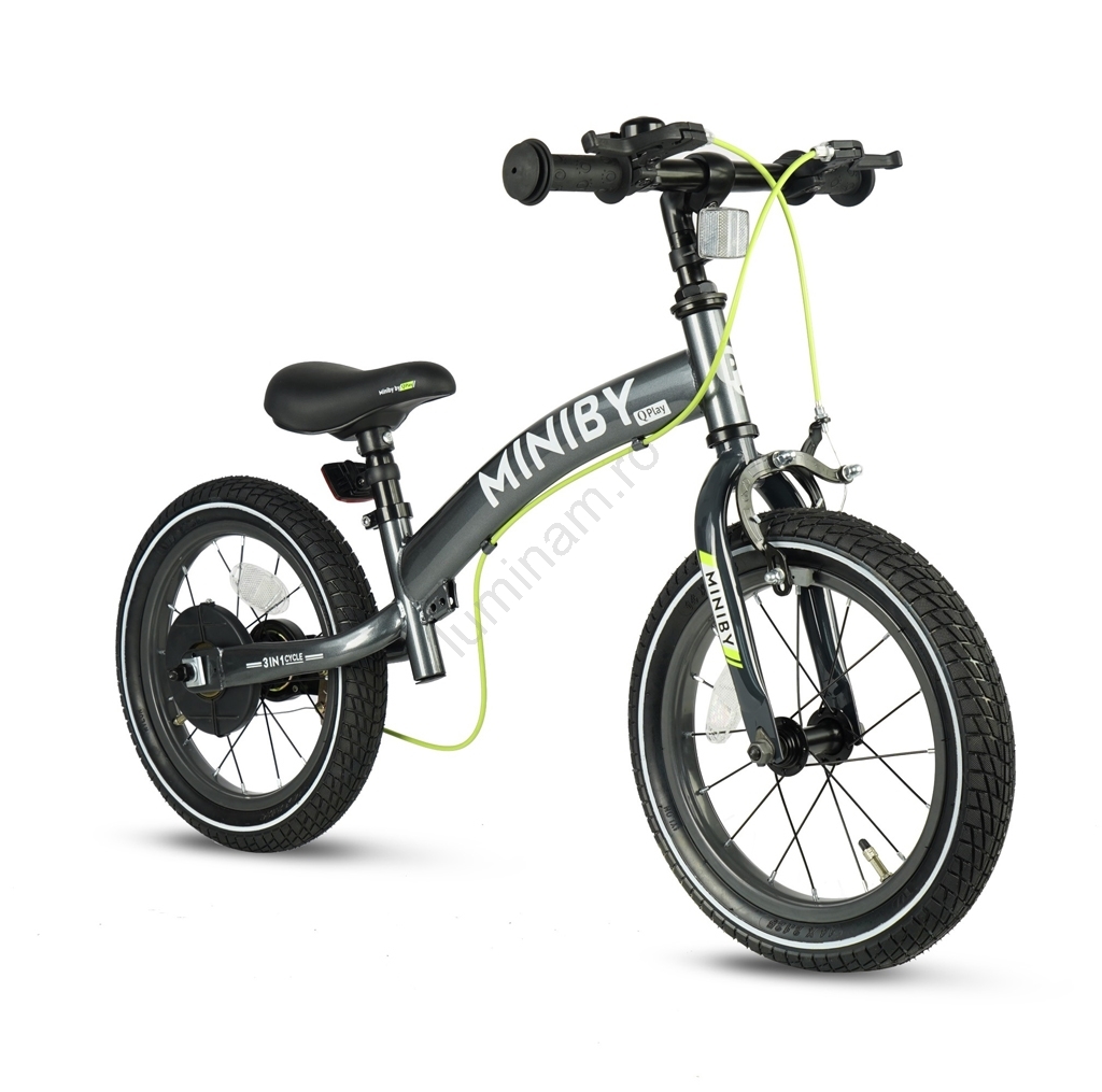 QPlay - Bicicletă pentru copii 14" MINIBY 3în1 gri