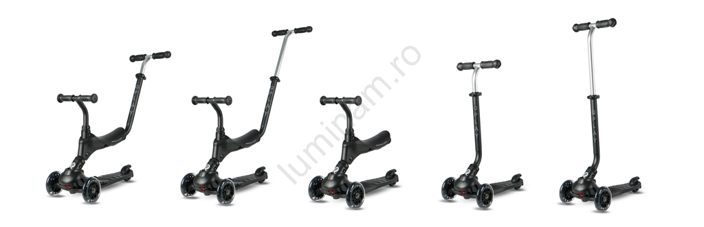 QPlay - Trotinetă pentru copii SEMA PRO 5în1 cu roți LED, neagră