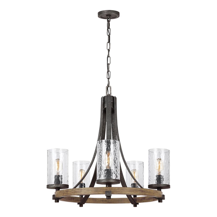 Quintiesse - Lustru pe lanț ANGELO 5xE27/60W/230V finisaj stejar