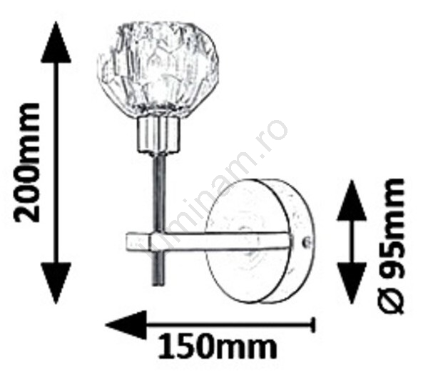 Aplica de perete Kassia, realizată dintr-o combinație de metal și sticlă, este recomandată celor care caută o lampă de perete elegantă pentru dormitor sau living. Corpul metalic al modelului auriu, în stil clasic, este compus din două părți: un suport decorativ rotund, auriu, și o parte a brațului fixată pe perete, completată de un abajur din sticlă ce amintește de cristal. Aplica de perete Kassia evocă o torță specială. Acest model poate fi utilizat cu o sursă de lumină economică, cu o putere de până la 5 W, soclu de tip G9. Dacă o amplasați în dormitor, alegeți un bec cu lumină albă caldă, care va intensifica atmosfera primitoare și intimă. Dimensiunile aplicii Kassia sunt: lățime 200 mm, diametrul suportului decorativ 95 mm, distanța față de perete 150 mm. Lampa se livrează fără bec.