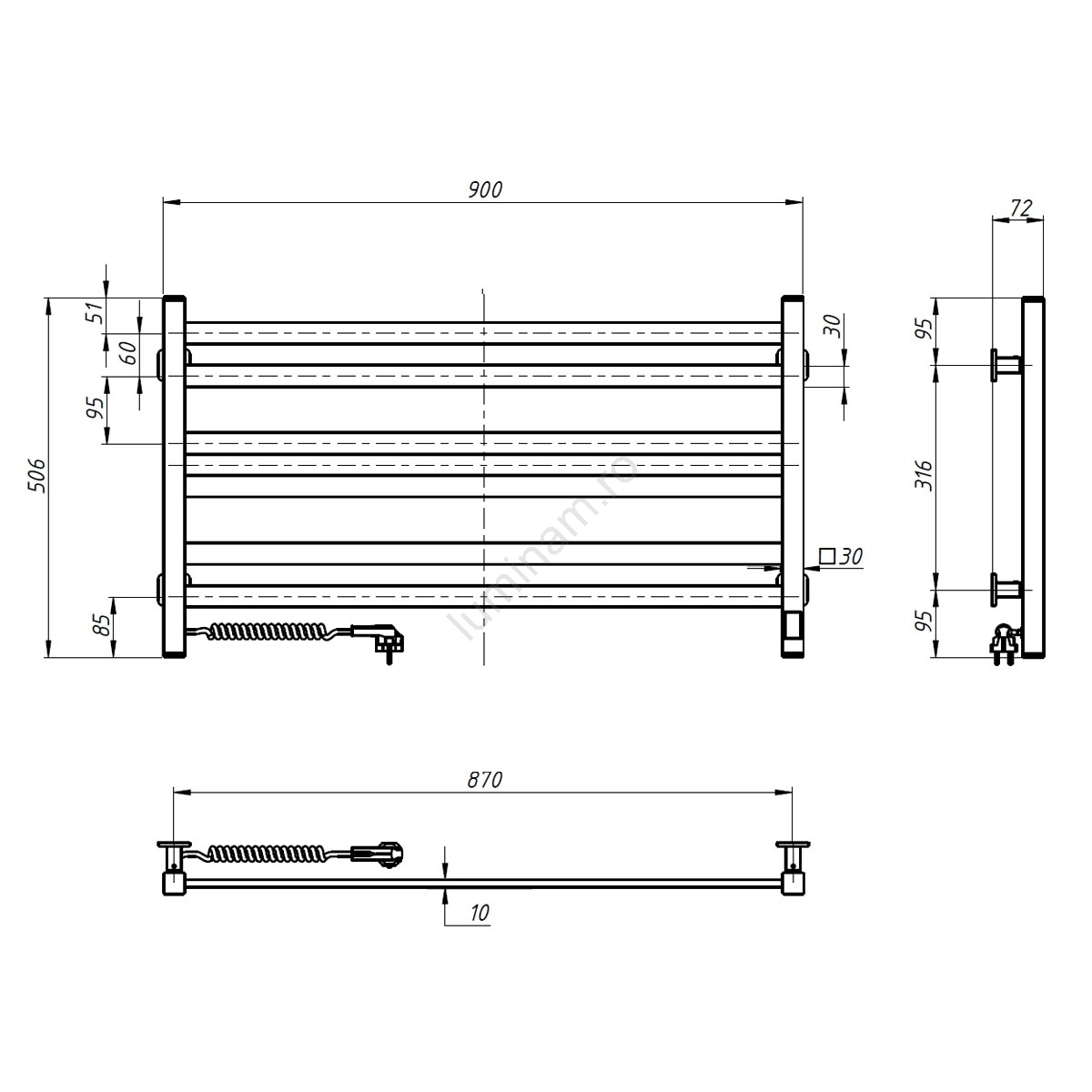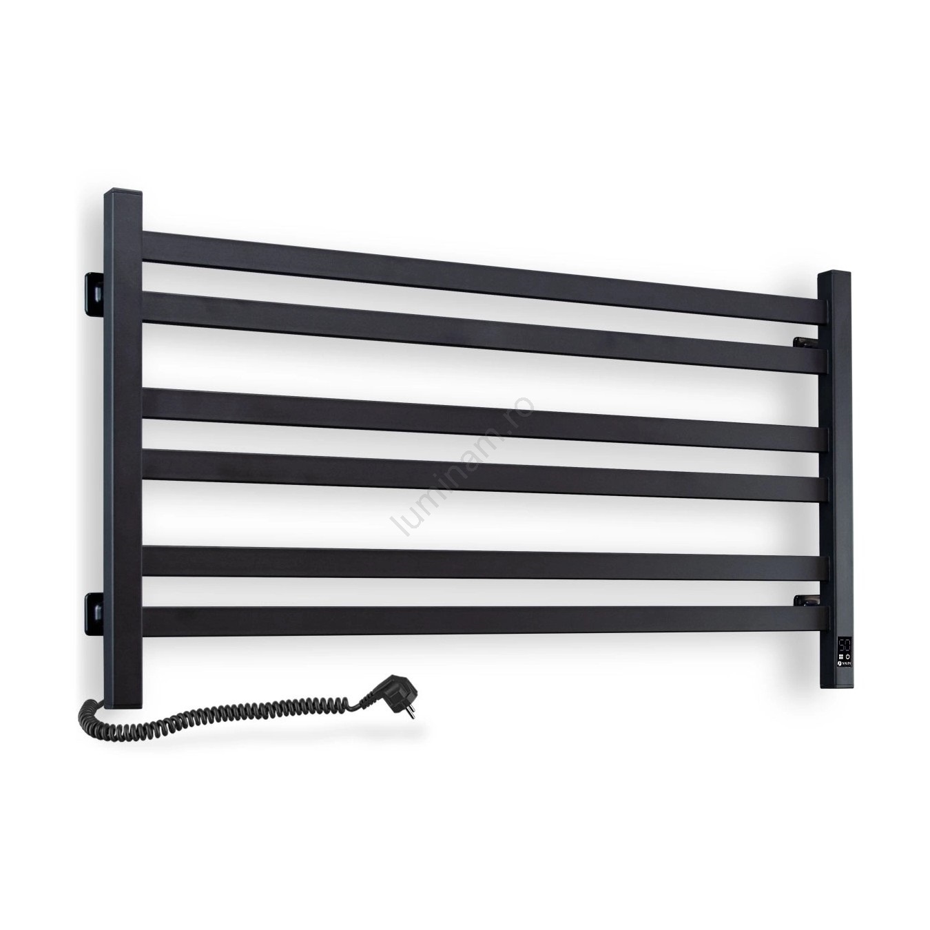Radiator de baie tip scară cu termostat AVANGARD 316W/230V 50,6 cm IP44 negru, montare pe stânga, cu design dreptunghiular